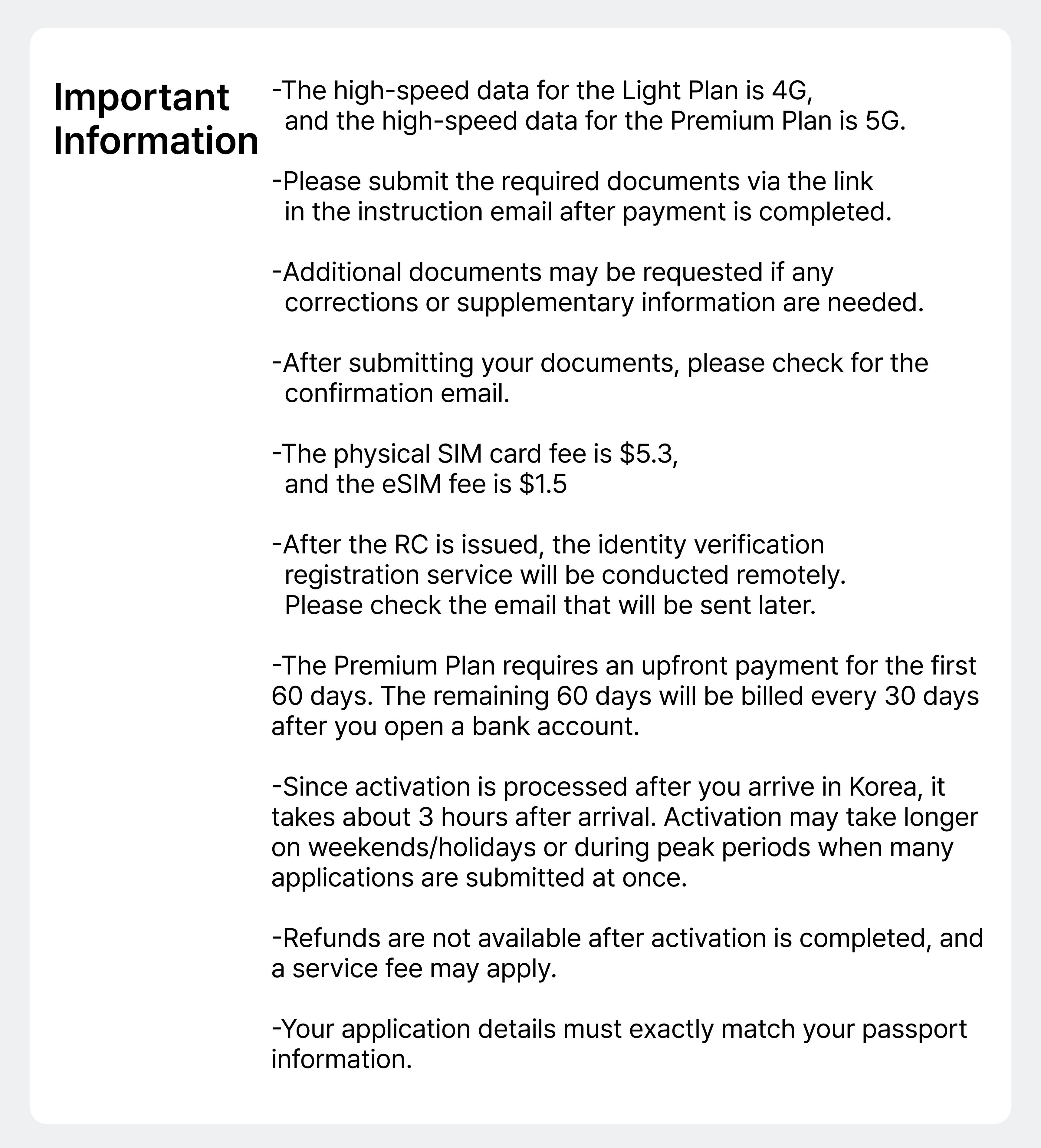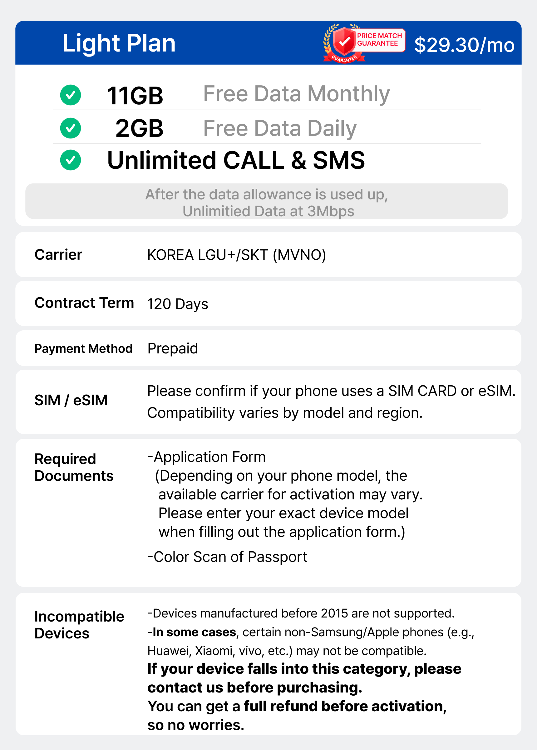 韩国学生SIM卡(120天)| 无限流量和通话 + 010号码 | 免费RC绑定 | eSIM | 价格匹配保证
